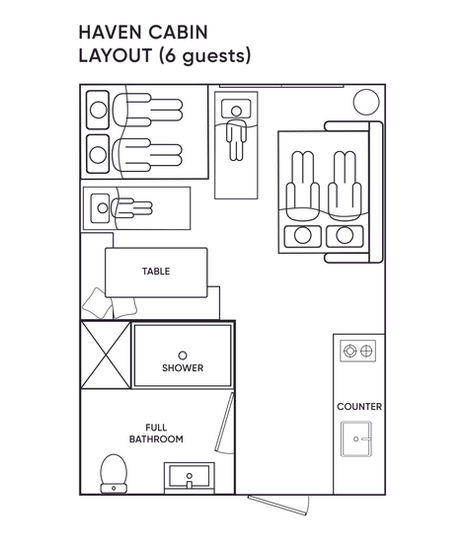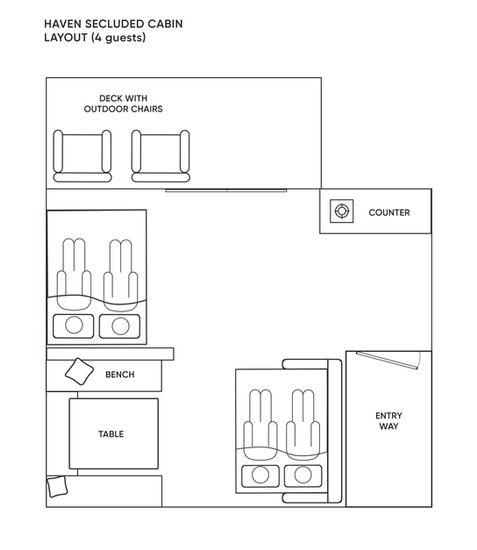 Two of our Haven cabins (# 5 and #17) have an accessible layout and amenities. These cabins make the glamping experience enjoyable for all. They are great for pairs, small families, or groups.​​​ They are essentially the same as the regular Havens except for these differences: